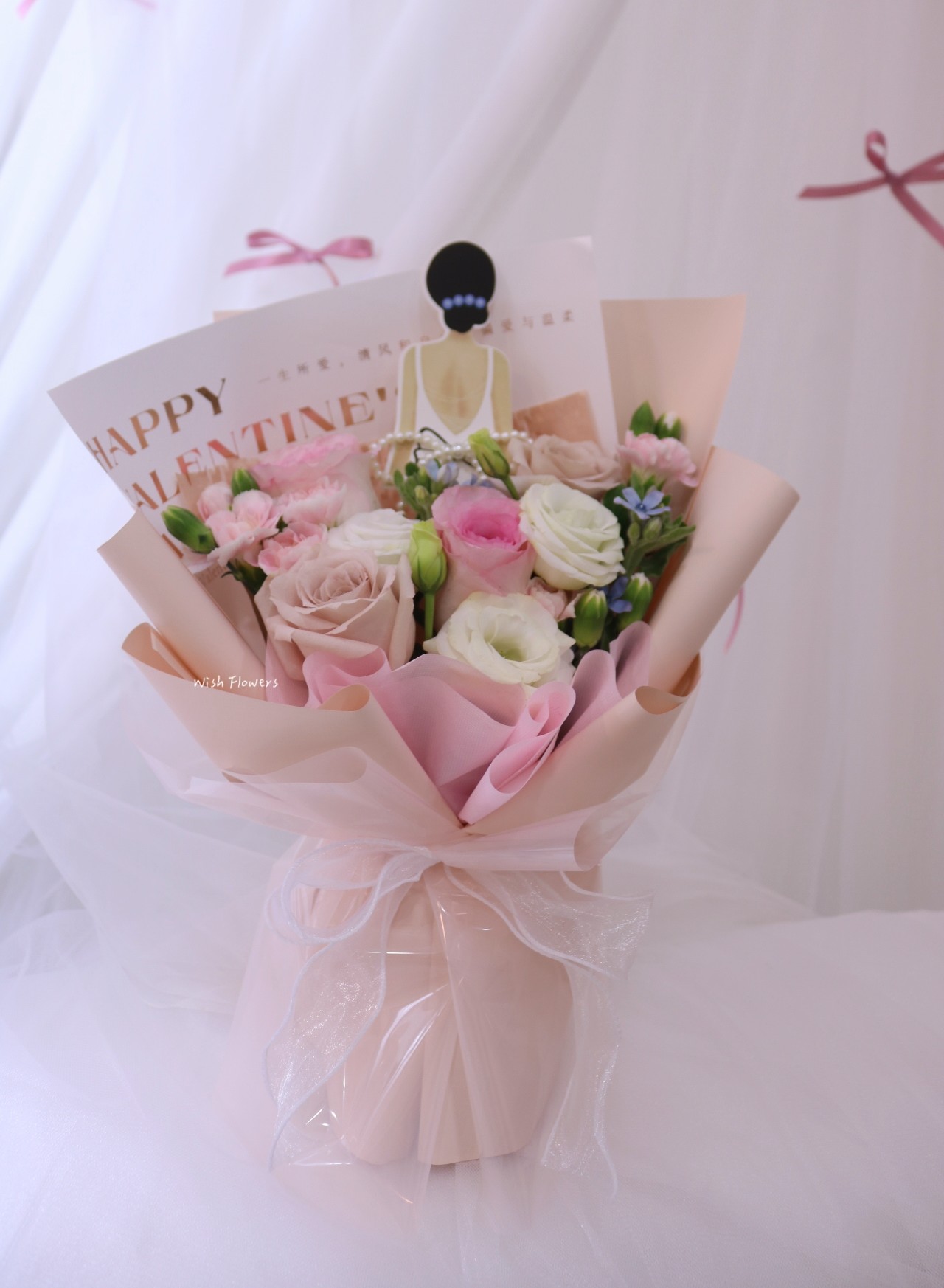 Carnation, Eustoma, Oxypetalum, Rose